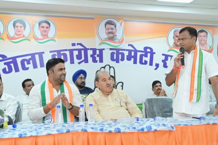 प्रदेश अध्यक्ष दीपक बैज ने कहा की आज की महत्वपूर्ण बैठक में उपस्थित रायपुर शहर के कांग्रेस के सभी नेता एवं कार्यकर्ता को एकजुट होकर इस दक्षिण विधानसभा के उपचुनाव में हमें हमारे युवा शक्ति विधानसभा के प्रत्याशी आकाश शर्मा के लिए मिलकर काम करना है आप सभी कांग्रेस परिवार के कार्यकर्ताओं को बूथ स्तर में जाकर कार्य करना है भारतीय जनता पार्टी के पिछले 9 महीने की सरकार में जिस तरह से पूरे प्रदेश में अपराध अपनी चरण सीमा पार कर चुका है महिलाओं के साथ छेड़खानी बलात्कार के अनगिनत मामले प्रदेश में दर्ज हो चुके हैं कानून व्यवस्था बेहाल हो चुकी है इन सभी मुद्दों को लेकर हमें दक्षिण की जनता के बीच में जाना है दक्षिण की जनता भली-बड़ी जान रही है कि भारतीय जनता पार्टी ने एक निष्क्रिय व्यक्ति को अपना प्रत्याशी चुना है हमें मिलकर हमारे युवा प्रत्याशी को इस दक्षिण विधानसभा के उपचुनाव में भारी मतों से जीत दिलानी है।।