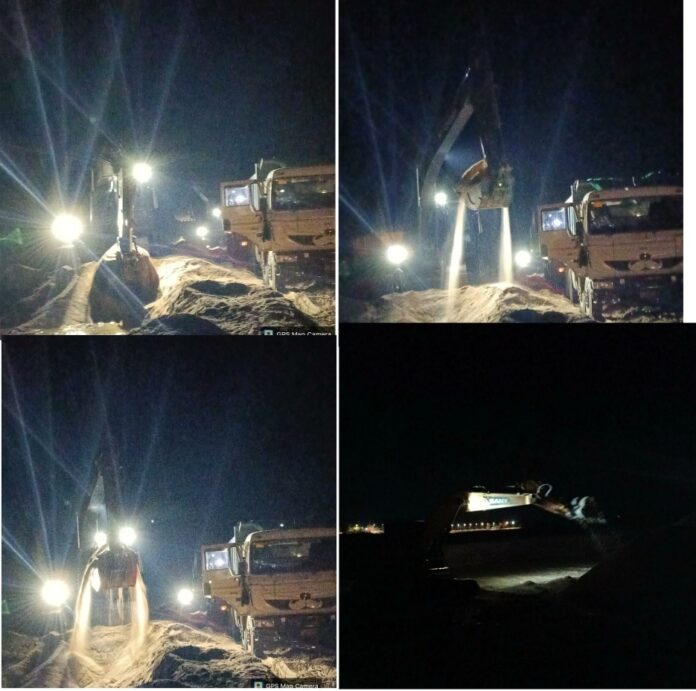 रातभर मशीनों से अवैध रेत उत्खनन चल रही है। जिसका